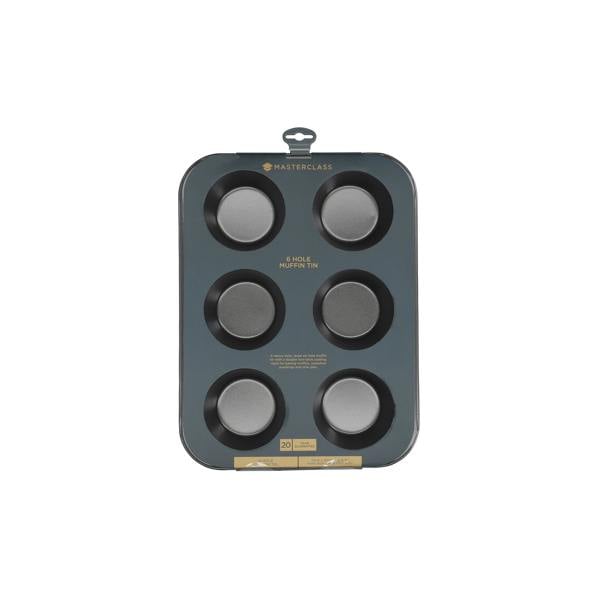 Bake beautiful sweet and savoury muffins with the MasterClass Non-Stick 6-Hole Deep Muffin Tin. The baking pan measures 35 x 26 cm, while its six holes measure 9 x 4 cm. The holes have extra-deep sides, so you can bake tall, springy muffins (or even mini pies!) with ease.