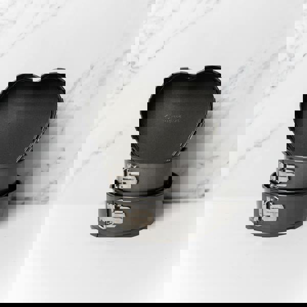 This set of MasterClass Non-Stick Spring Form Loose Base Cake Pans means there’s no excuse not to have cake! Made from commercial-grade carbon steel with a non-stick coating, you can be sure of perfectly formed cakes – no more spatulas to separate cake from tin, and no more bits of sponge stuck to the tin, consistent results, every time.