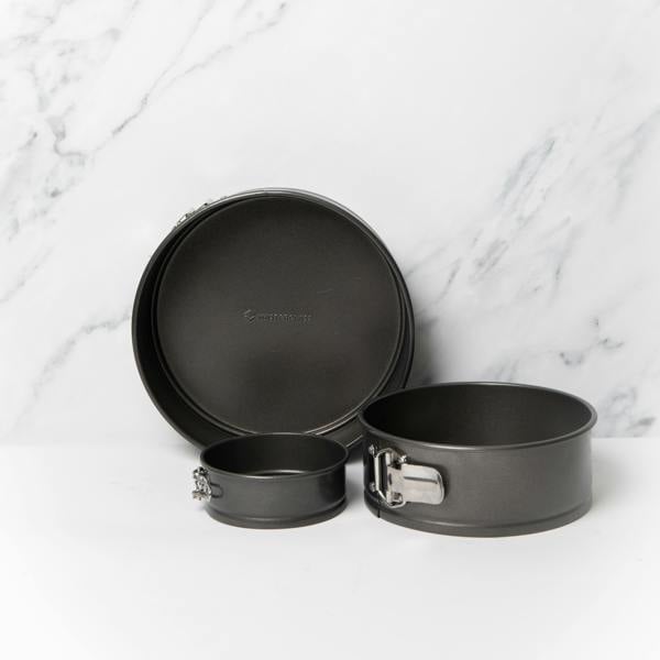This set of Three MasterClass Non-Stick Spring Form Loose Base Cake Pans means there’s no excuse not to have cake! Made from commercial-grade carbon steel with a non-stick coating, you can be sure of perfectly formed cakes time and time again.