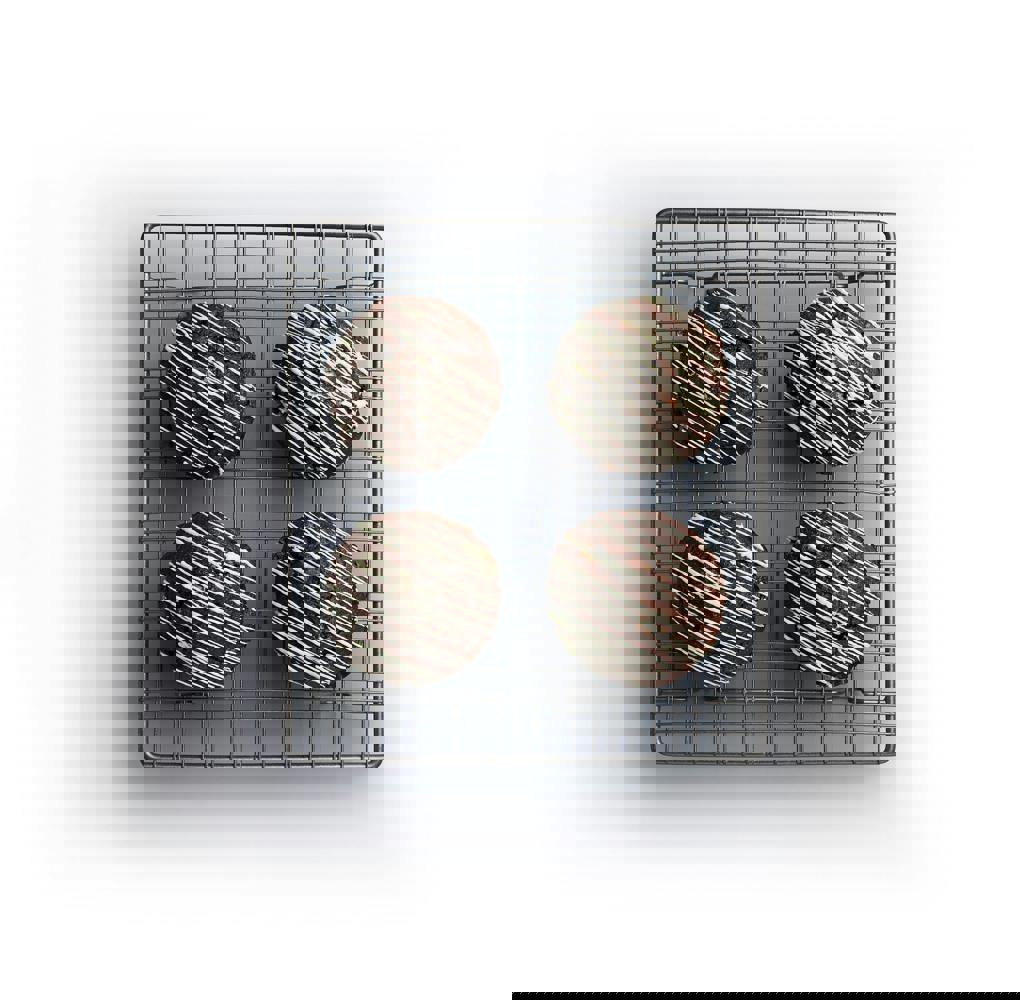 The 26 x 23 cm MasterClass Carbon Steel Non-Stick Baking Rack / Trivet helps all your baked creations cool quickly before you decorate or serve them, as well as preventing hot pans from damaging your work surface.