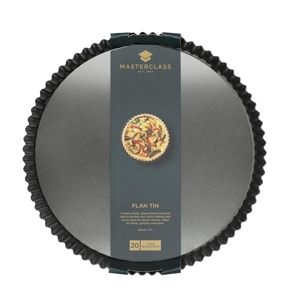 A great baker needs quality equipment. This MasterClass Non-Stick Large Fluted Flan Tin / Quiche Pan with Loose Base is made from commercial-grade, heavyweight carbon steel with a durable non-stick finish and loose base.