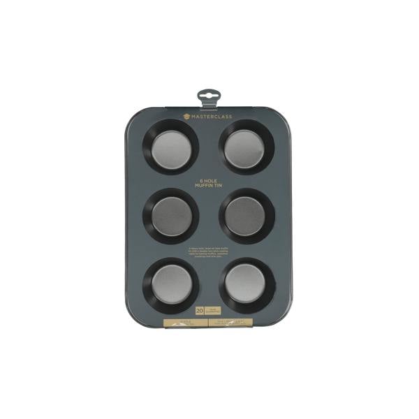 Bake beautiful sweet and savoury muffins with the MasterClass Non-Stick 6-Hole Deep Muffin Tin. Its durable commercial-grade carbon steel construction and impressive non-stick coating take the hassle out of baking better cakes.