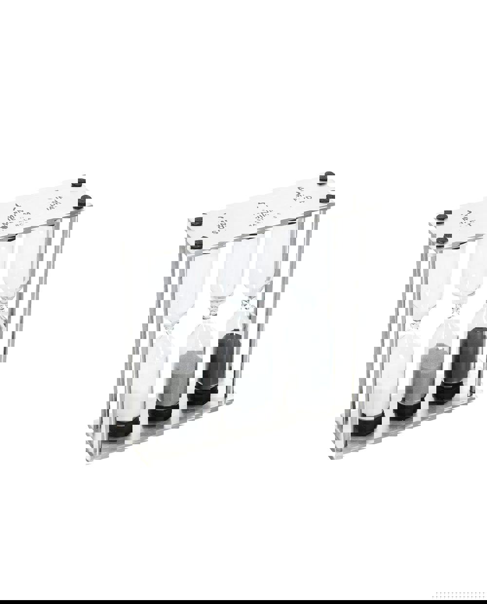 It features three hourglass-shaped timers, which measure different times for perfect hard, medium and soft-boiled eggs: