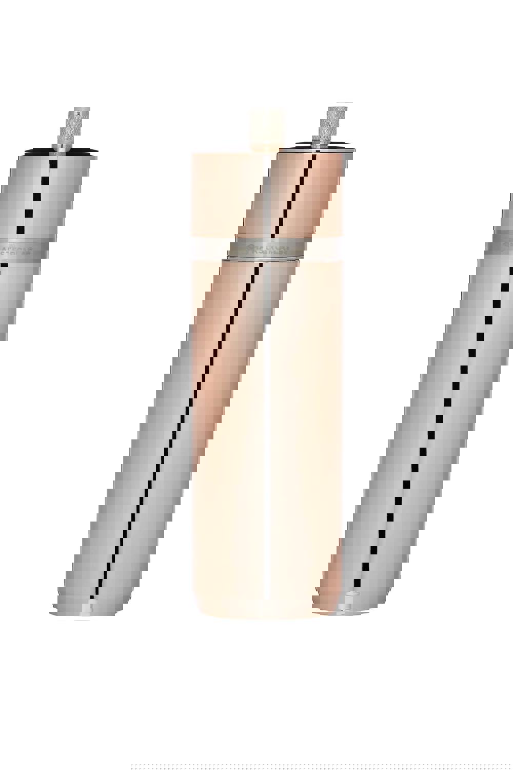 Large pepper mill or salt grinder - the choice is yours. Either way, this quality single mill helps you grind peppercorns and rock salt with precision, speed and style. It's made of robust plastic with a warm, glowing finish that mimics the look of copper. As a finishing touch, it features a metal band that's laser-etched with the MasterClass logo, giving it a glimmer that's sure to look fantastic on kitchen worktops and dining tables alike. This refillable pepper grinder can be topped with interchangeable metal ‘S’ or ‘P’ knobs, so you’ll always know which seasoning is inside. The grinding mechanism, meanwhile, is made of tough, rust-resistant ceramic. It will make easy work of grinding your chosen seasoning, ensuring a quick and even grind. All salt or pepper mills are protected by Masterclass' five-year guarantee.