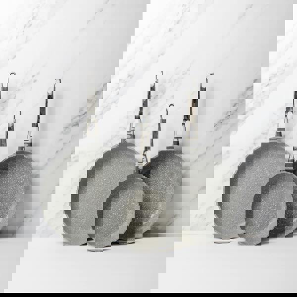 Make flavour-packed meals in minutes with these fast-heating frying pans. When you can’t put your hunger on hold, it’ll make short work of your favourites. Great sizes if you’re preparing a quick meal for yourself or cooking for family and friends. Look forward to tasty chicken stir fries, hearty seared steaks, and – everyone’s favourite – the classic cooked breakfast. The secret to their speed lies in the steel induction base and cast aluminium body, which spreads heat quickly and evenly. This means your favourite fried foods arrive on your table in a fraction of the normal cooking time. Best of all, it saves cash and saves on calories. The double non-stick coating lets you cook with less oil, so it’s a boon for dieters and means fewer trips to the shops to top up on unhealthy cooking fats.