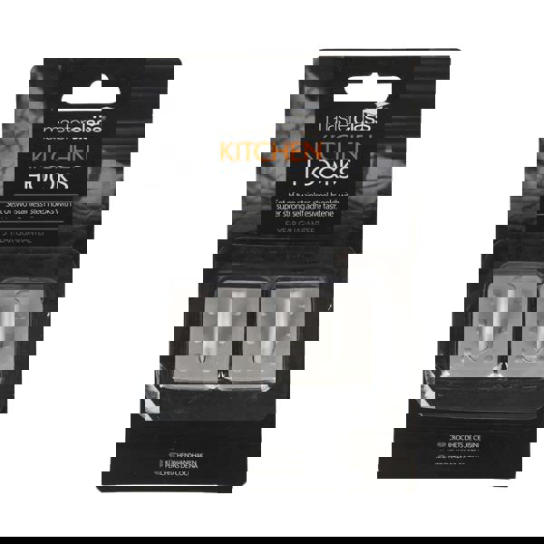Neatly hang up your cooking aprons, tea towels and oven gloves with the set of two MasterClass Square Adhesive Stainless Steel Wall Hooks.