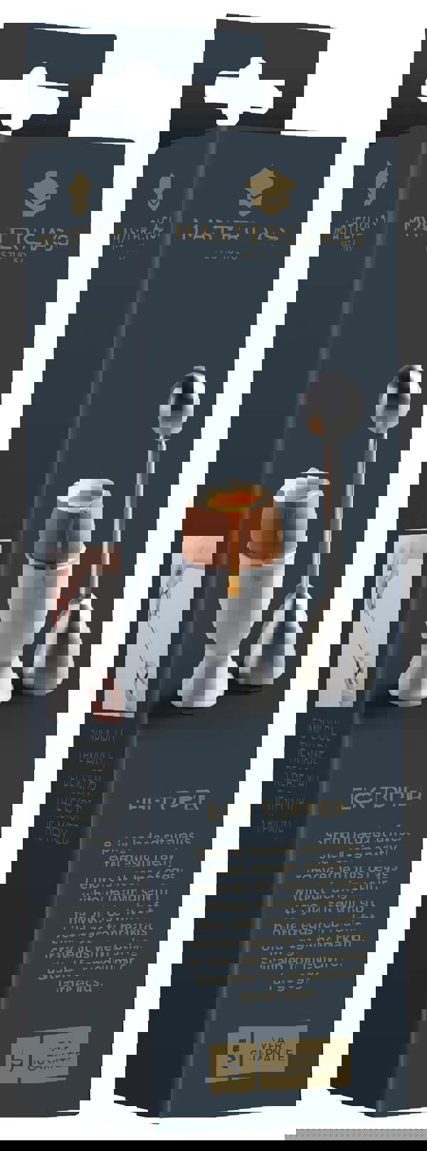 Rest assured you won't have to deal with bits of shell in your breakfast for a while as this egg topper is covered by Masterclass' five-year guarantee.