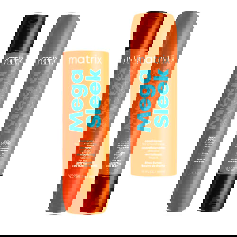 Discover the secret to super-smooth, shiny hair. Target frizz and make hair more manageable with the Matrix Total Results Mega Sleek Shampoo and Conditioner duo!