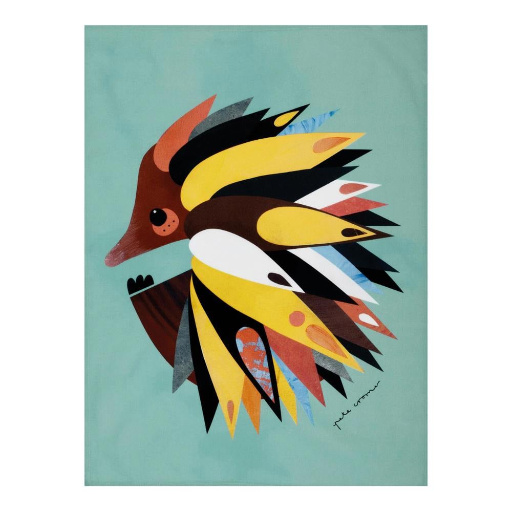 Inspired by the colour and personality of Australia's native wildlife, Pete Cromer's animal tea towels will help make your kitchen a happier place to be. This 100% cotton tea towel features the artist’s take on the enigmatic echidna. This curious, egg-laying mammal is given the full Cromer treatment, with his trademark use of bold colour and collage. Match the towel with Pete Cromer mugs, coasters, tote bags and more, all featuring a menagerie of Aussie animals in the same distinct style.