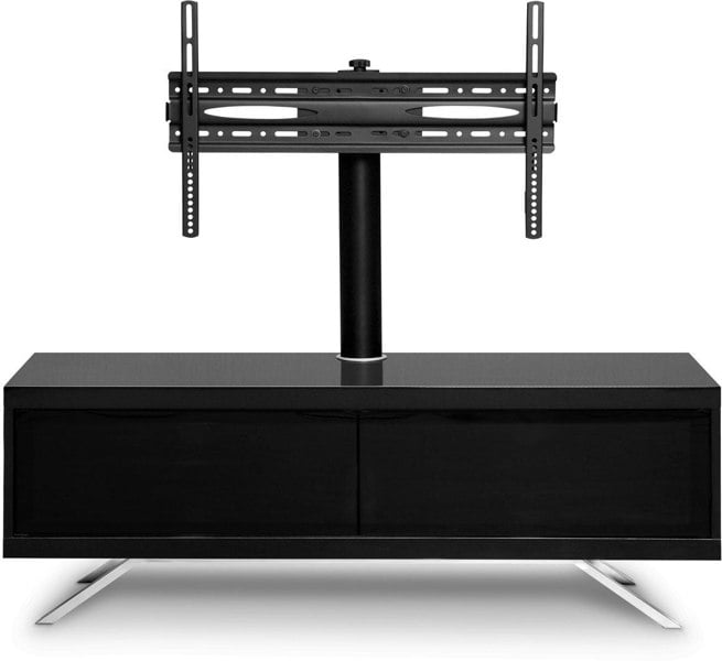 MDA Designs TUCANA 1200 HYBRID Black TV Cabinet BeamThru Remote-Friendly Doors up to 60" Flat Screen TVs with Mounting Arm