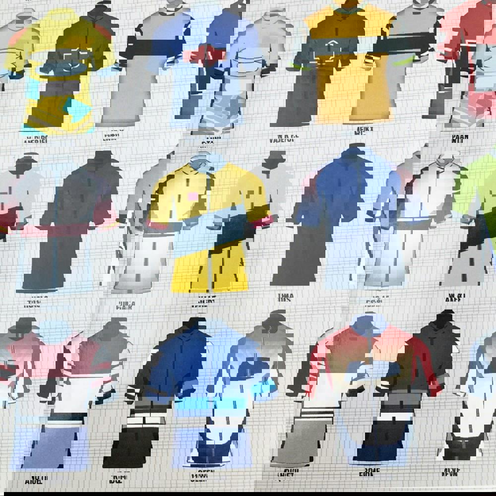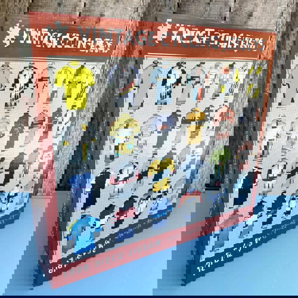 Embark on an exciting journey through the annals of cycling history with our Vintage Cycling Jerseys 1000-Piece Jigsaw Puzzle. This captivating puzzle brings together 24 iconic cycling jerseys from some of the most legendary riders in the sport, including Eddy Merckx, Mark Cavendish, Mathieu van der Poel, and Chris Froome.