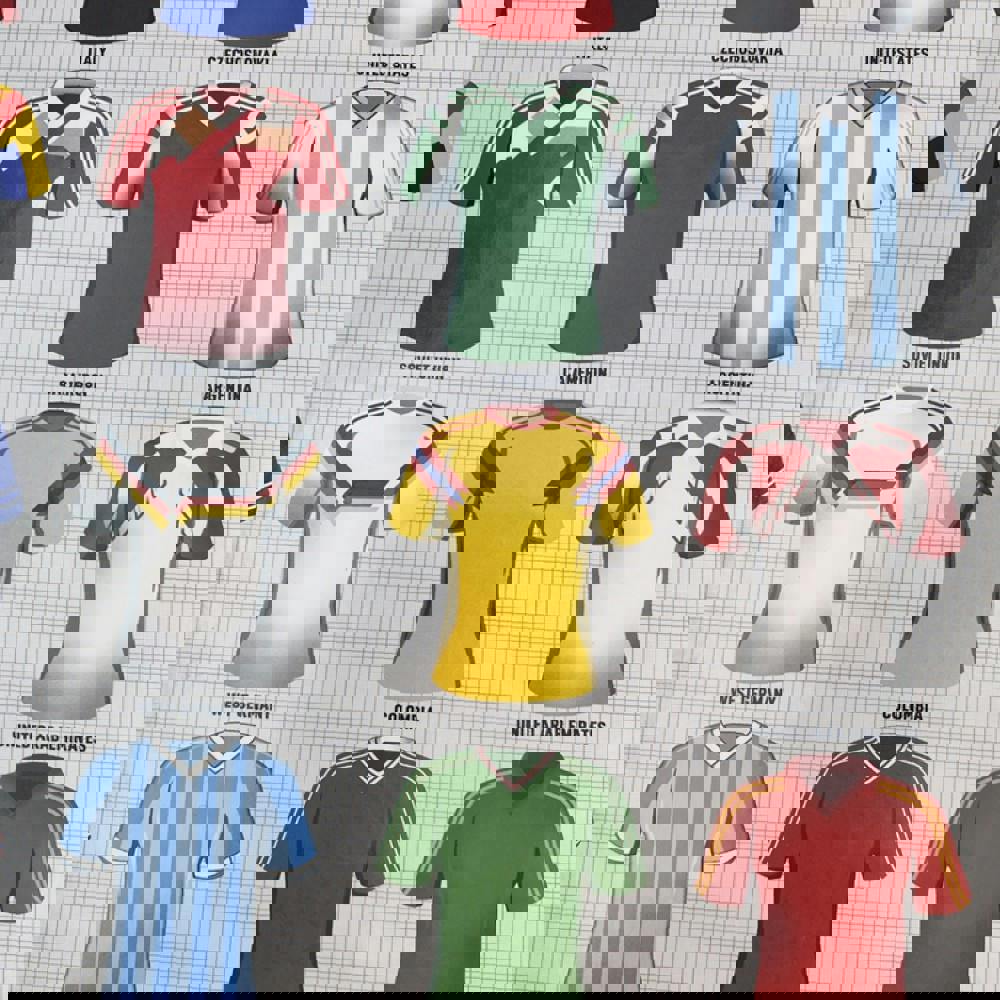 Experience the thrill of the beautiful game and test your puzzle-solving skills with our Vintage Football Tops 1000-Piece Jigsaw. This captivating jigsaw puzzle is a must-have for football fans and collectors alike, showcasing the iconic national team shirts from the 1990 FIFA World Cup. Held in Italy and won by West Germany, this tournament brought together the best players and most recognisable kits that have stood the test of time.