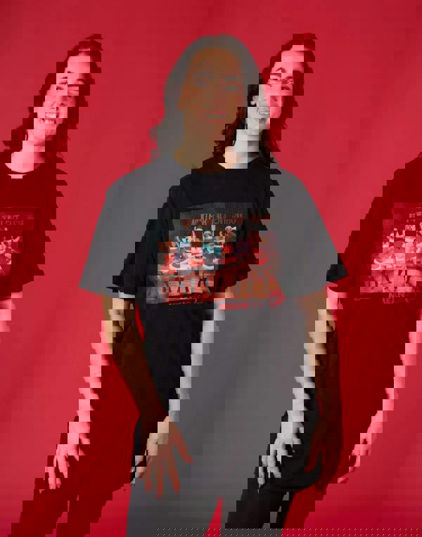 This festive tee features the iconic Christmas talent show Jingle Bell Rock dance performance, making it the perfect choice for fans of the beloved movie looking to spread some holiday cheer