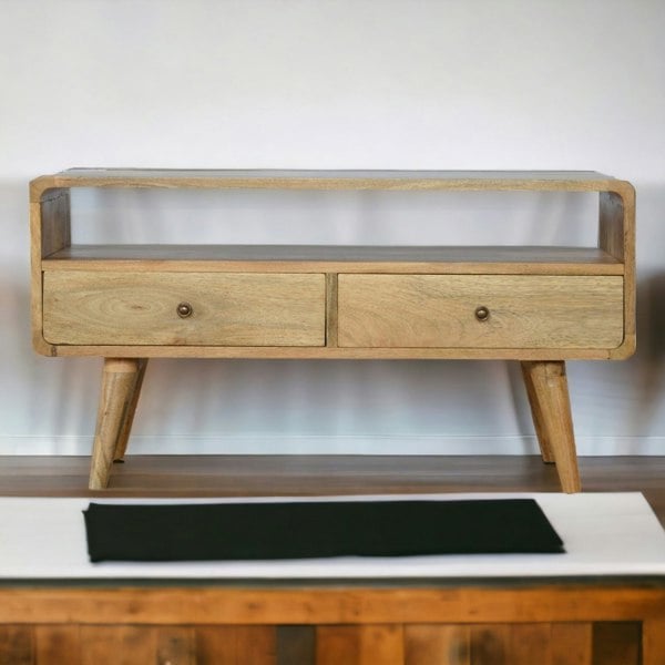 Practical storage that looks the part in both professional kitchens and relaxed living rooms. Stainless steel single and double-tier over-shelves pair with full catering bench setups, while solid wood media units in chestnut and contemporary open designs bring a warmer residential feel. From brands such as Kukoo and Artisan Furniture.
