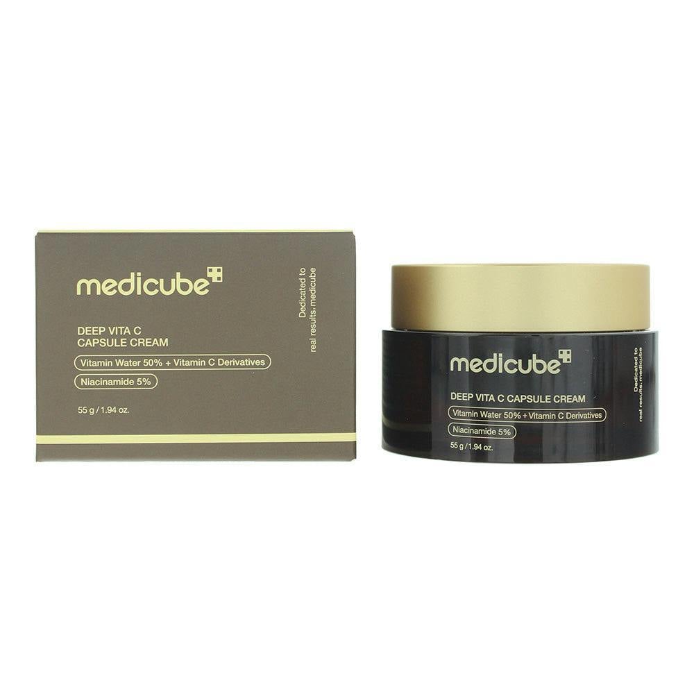 Medicube Deep Vit C Capsule Cream is a skincare cream supplied in a 55g size. It is intended for topical application as part of a regular skincare routine.