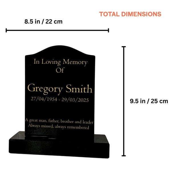 Honour your loved one with this beautifully crafted Granite Ogee Headstone Plaque, small size; designed from premium polished black granite. Compact yet elegant, this small memorial is ideal for garden remembrance, cremation plots, pet memorials, or graveside tributes where space is limited.