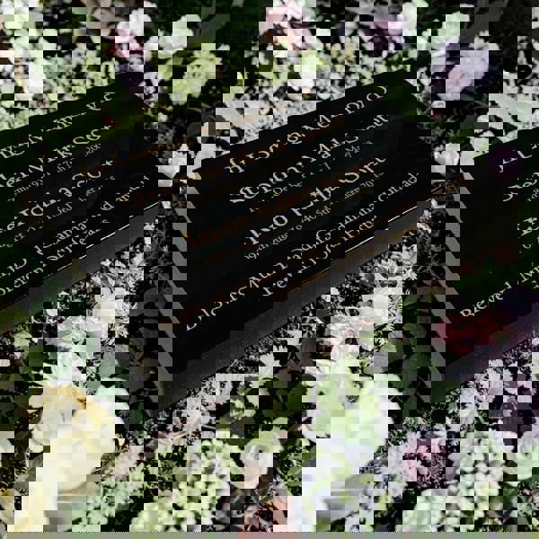 Personalised gold engraving allows space for two names along with dates or a short message, creating a touching and dignified memorial. The engraving is applied directly onto the granite surface, ensuring a clear and lasting inscription that will remain beautiful for years.