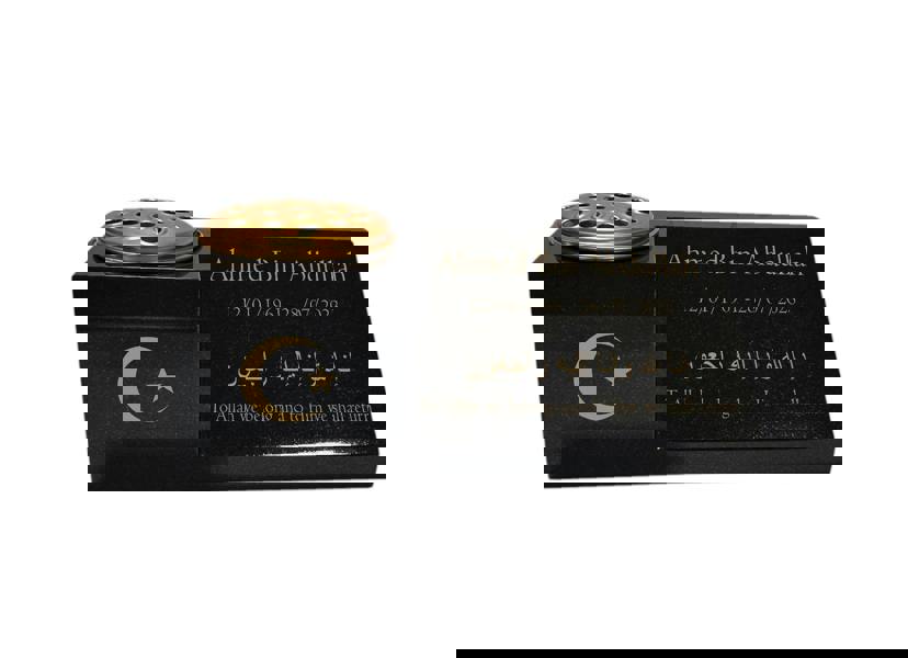 Memorials Direct Granite Memorial Vase and Plaque Combination – Islamic Design 1, Solid Granite (16x6x6”) with Flower Pot Insert