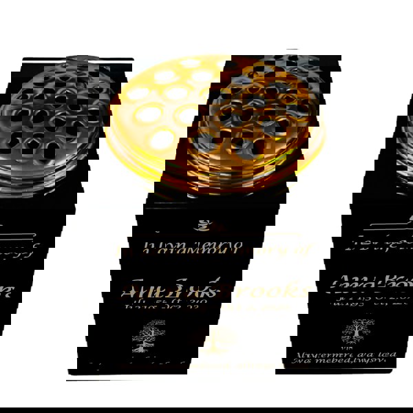 Each vase includes a removable metal flower insert in a gold finish, adding a refined contrast to the polished black stone. With custom gold-filled engraving included in the price, you can personalise names, dates, symbols, and artwork directly onto the granite.