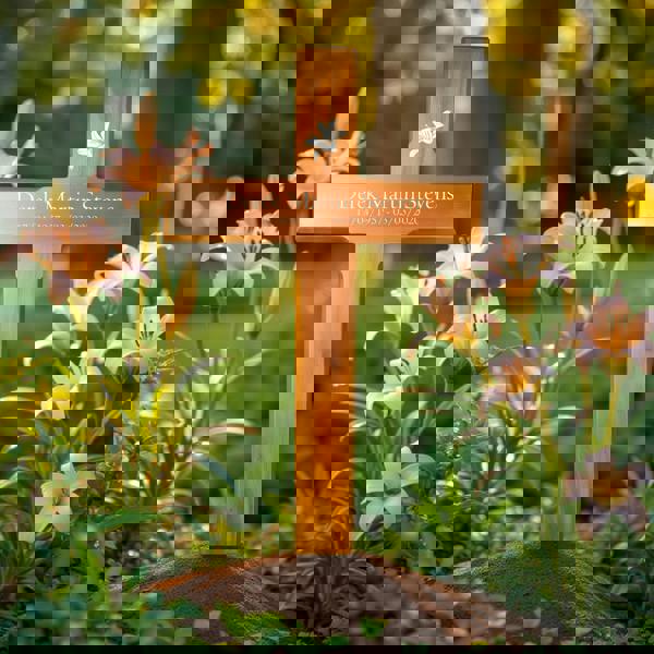 Memorials Direct Personalised Mahogany Memorial Cross, Lily – Durable Wooden Grave Marker for Outdoor Use