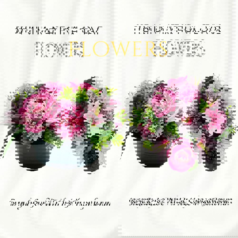 Add a touch of elegance and depth to any memorial with this 24cm arrangement of Burgundy Roses with Lily and Chrysanthemum in a durable weighted pot. Perfect for gravesides, cemeteries, and remembrance gardens, this lifelike floral display offers a rich, heartfelt tribute that endures through all seasons. Crafted from quality, weather-resistant materials, it maintains its beauty without the need for watering or maintenance.