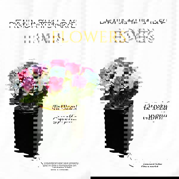 Add a gentle and heartfelt touch to any memorial with this 25cm display of lifelike Pink Rosebuds with Gypsophila. This elegant arrangement brings a sense of peace and remembrance, offering lasting beauty without the need for watering or upkeep. Perfectly sized for granite memorial vases, it provides a soft and graceful tribute that endures through all seasons.