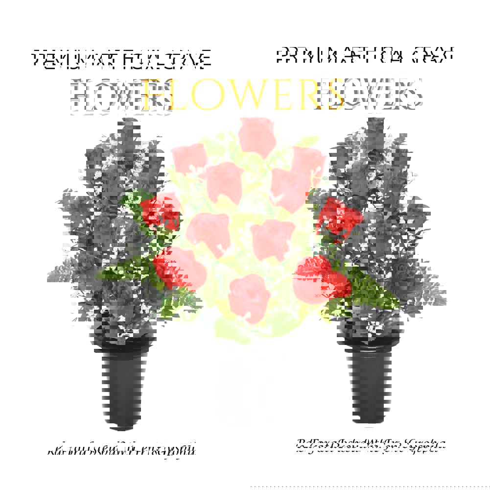 Add a striking and heartfelt tribute with this 29cm display of lifelike Red Frontal Rosebuds with Fern and Gypsophila. Expertly arranged for granite memorial vases, this elegant floral arrangement brings lasting colour and sophistication to any resting place. Fully weatherproof and maintenance-free, it offers a meaningful way to honour a loved one year-round.