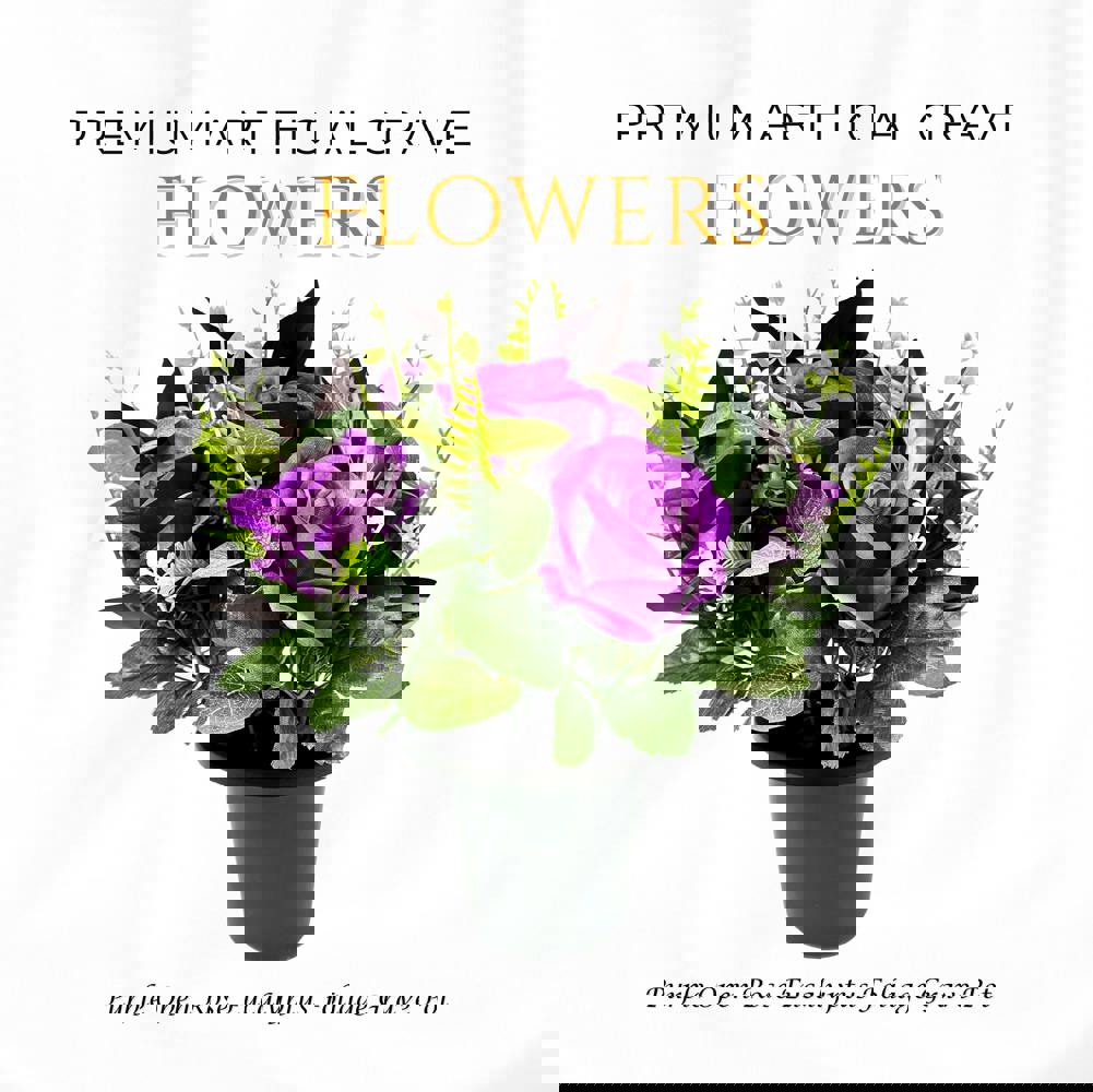 Add a timeless tribute with this 25cm display of lifelike Purple Open Roses and Eucalyptus leaves. Perfectly sized for granite memorial vases, this weatherproof arrangement offers lasting beauty without the need for watering or upkeep.