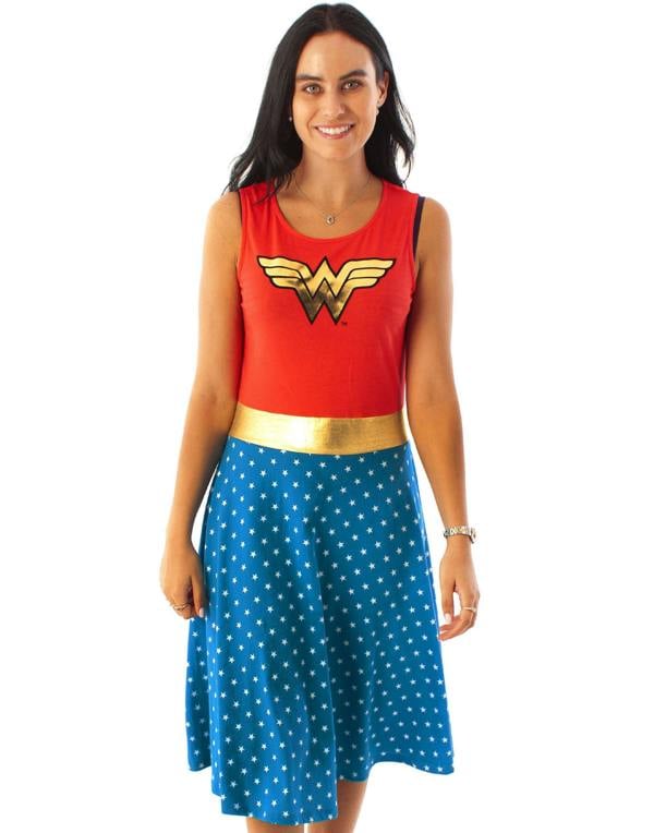 DC Comics Womens Red Logo Sleeveless Skater Dress