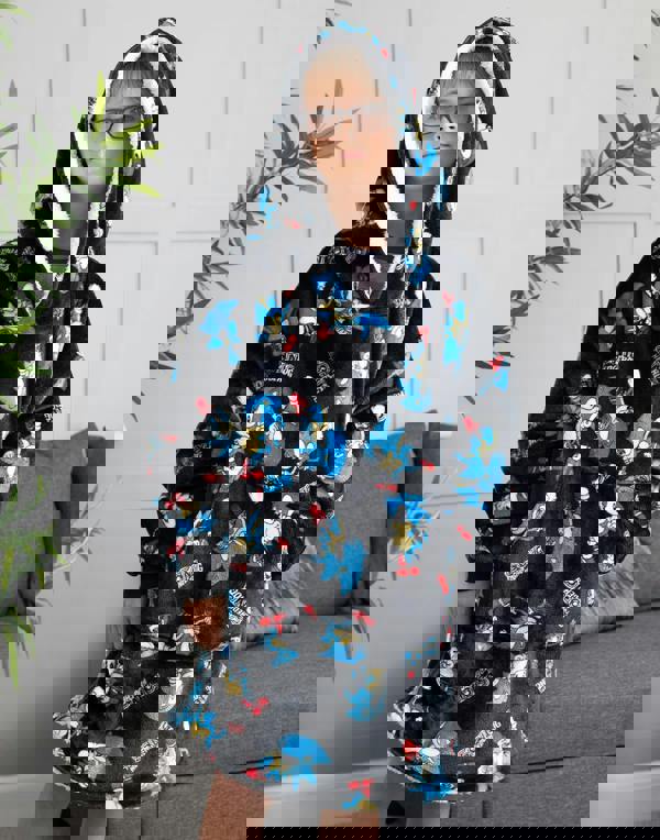 Sonic the Hedgehog Unisex Kids Black Sonic & Logo All-Over Print Blanket Hoodie