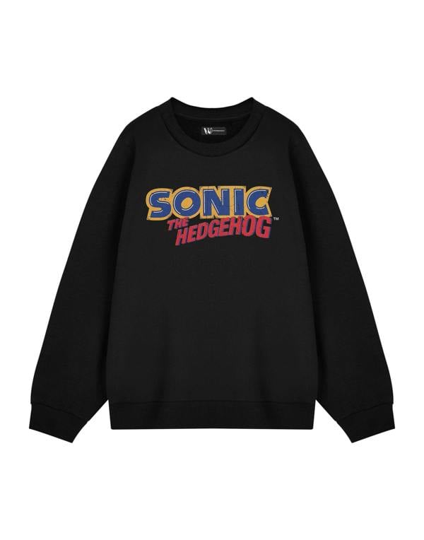 Sonic the Hedgehog Mens Black Distressed Logo Sweatshirt