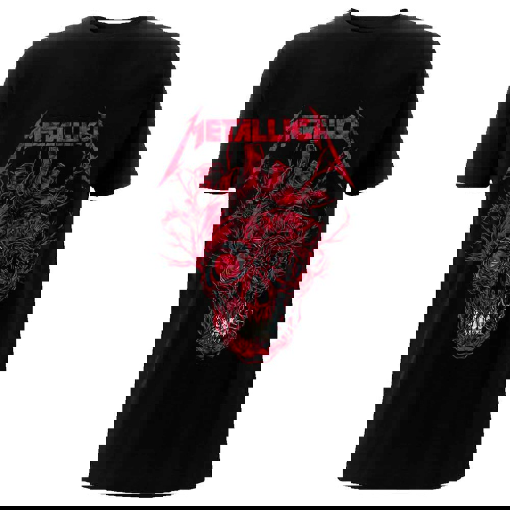 An official licensed Tee featuring the Metallica 'Heart Skull' design motif. This high quality Tee is available in a black colourway. Classic fit soft-style cotton tee featuring short sleeves & crew neck. Comes in a wide range of sizes from Small through XX-Large, subject to availability.