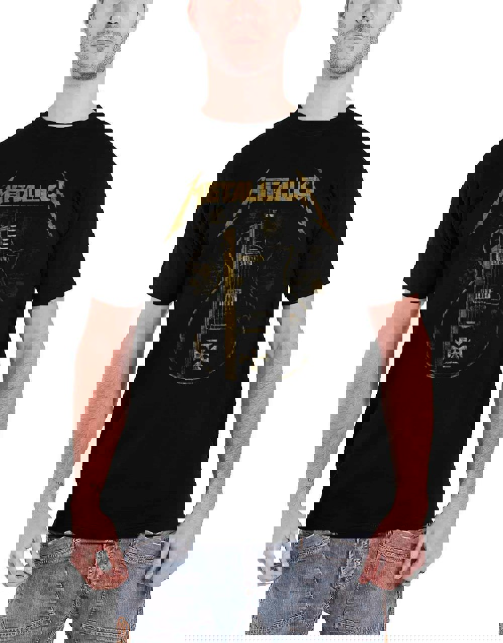 Metallica T Shirt Hetfield Iron Cross band logo new Official Mens Black