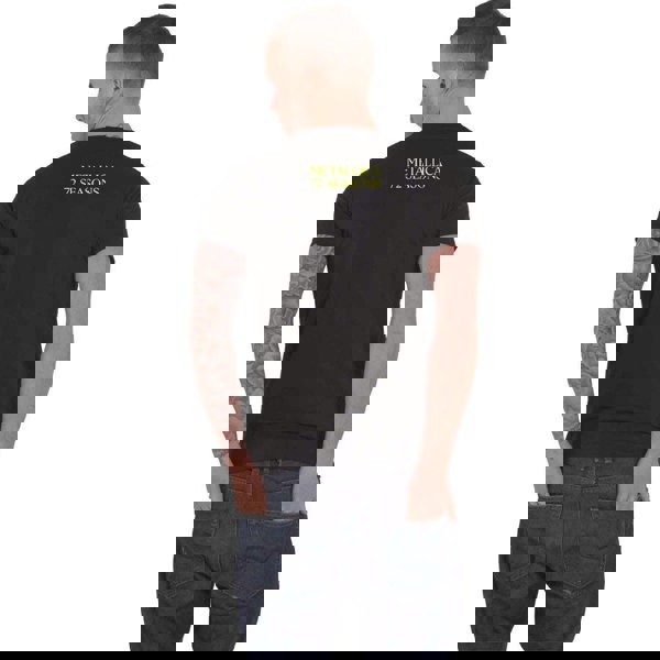 An official licensed Metallica Unisex T-Shirt featuring the '72 Seasons Burnt Crib' design motif. This high quality T-Shirt is available in a black colourway. High quality soft-style cotton unisex fit tee featuring crew neck and short sleeves. With front and back printing. Comes in a wide range of sizes from Small through XX-Large, subject to availability.