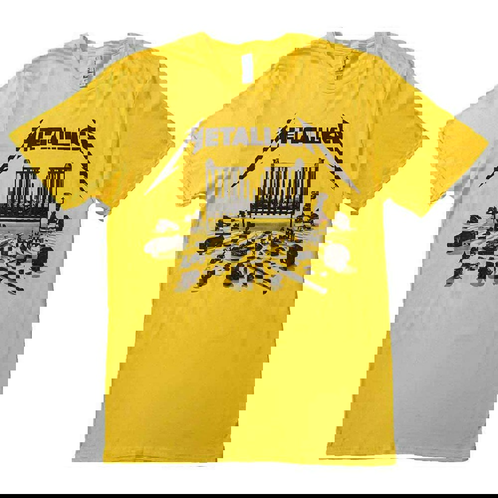 An official licensed Metallica Unisex T-Shirt featuring the '72 Seasons Simplified Cover' design motif. This high quality T-Shirt is available in a yellow colourway. High quality soft-style cotton unisex fit tee featuring crew neck and short sleeves. Comes in a wide range of sizes from Small through XX-Large, subject to availability.