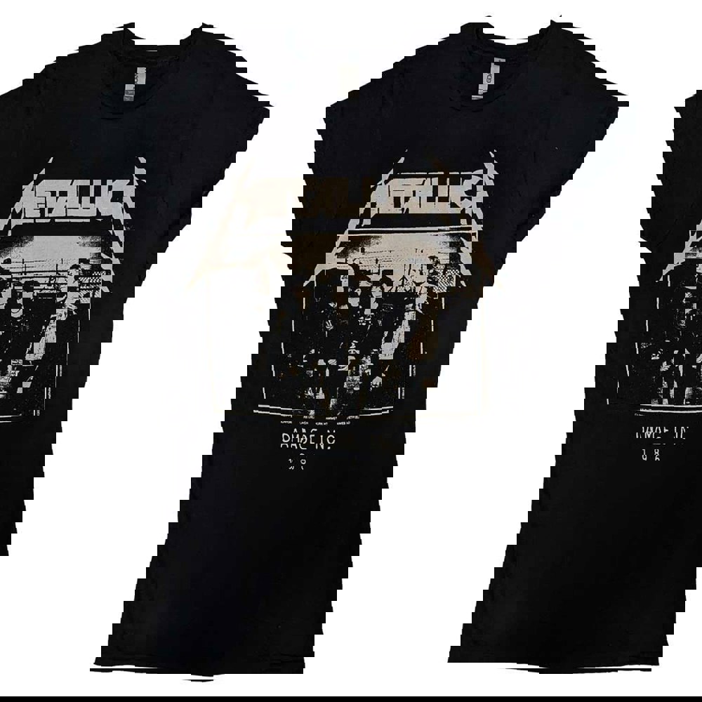 An official licensed Metallica Ladies Tee featuring the 'MOP Photo Damage Inc Tour' design motif. This high quality t-shirt design is available in the black colourway. Comes in a wide range of sizes from Small through XX-Large, subject to availability.