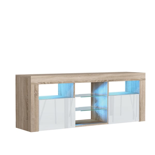 Add warmth and elegance to your living room with this 145 cm TV unit – featuring an oak matt body paired with sleek white high gloss doors. The natural oak tone creates a cosy, timeless look, while the glossy white fronts add a modern touch of sophistication. Included free LED lighting completes the design with a stylish glow, making this unit the perfect blend of function and contemporary style.