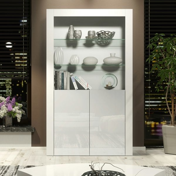 Bring brightness and functionality to your home with this modern 170 cm tall display cabinet, crafted with a white matt body and high gloss white doors for a clean, contemporary look. Designed to suit a variety of modern interiors, this unit offers both practical storage and elegant open display options.
