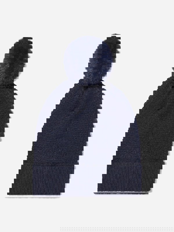 This Michael Kors girls pull-on hat comes in navy with a knitted construction and a pompon top. A turned-up cuff adds a clean finish, with gold embroidery for a standout detail. The front is branded in relief for a clear logo look.