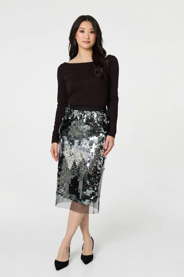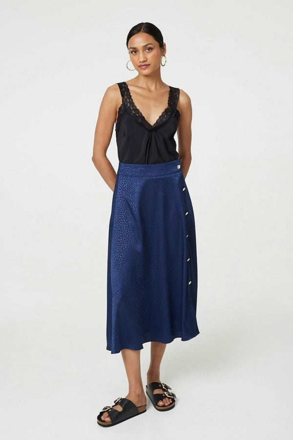 Metallic A-Line Midi Slip Skirt
