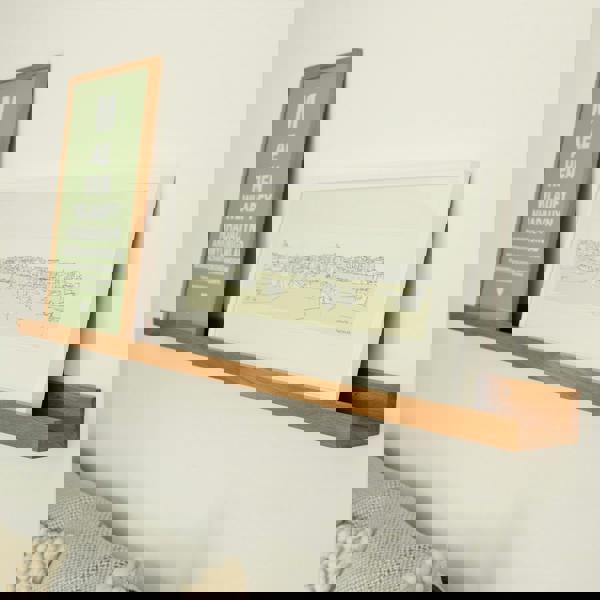 Handcrafted by MijMoj Design in North Wales, this solid oak floating shelf combines style, practicality, and quality craftsmanship. Custom made to your exact measurements, it provides a versatile wall display for photos, prints, mirrors, small plants, ceramics, or kitchen storage.
