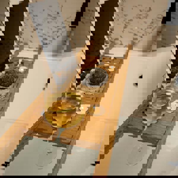 Handcrafted in the UK by MijMoj Design, this solid oak Bath Tray Caddy brings a considered touch to bath time, keeping everyday essentials neatly within reach while you unwind. Designed to add warmth and elegance to the bathroom, it offers a practical surface for those longer soaks when you want everything organised in one place.