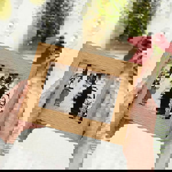 A superior quality contemporary solid oak photo frame. Suitable for a 6x4" photo print in a portrait or landscape orientation. Free standing or can be wall mounted.