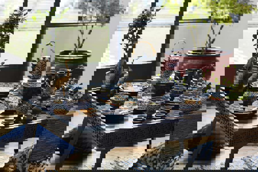 Embrace Japanese traditions with our embossed Seigaiha wave pattern tableware and accessories, perfect for those who love oriental designs. The traditional Japanese pattern is the Japanese sign for good luck, energy and happiness. This pattern adorns pieces within the collection in a deep indigo blue and white, with gold edge detailing to add a touch of elegance. Each piece features different elements of this design enabling you to mix and match to create your own style.