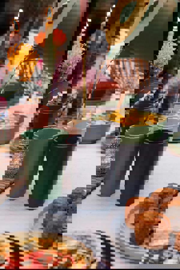 Serve iced coffee, sparkling wine and fizzy drinks to entertain your guests with a cheerful display, featuring four different colours, including terracotta, green, grey and warm grey.