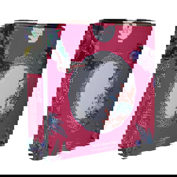 Part of the Mikasa x Sarah Arnett collection, this set of four porcelain dinner plates is decorated in a colourful print, set amongst a backdrop of colourful flora and fauna.