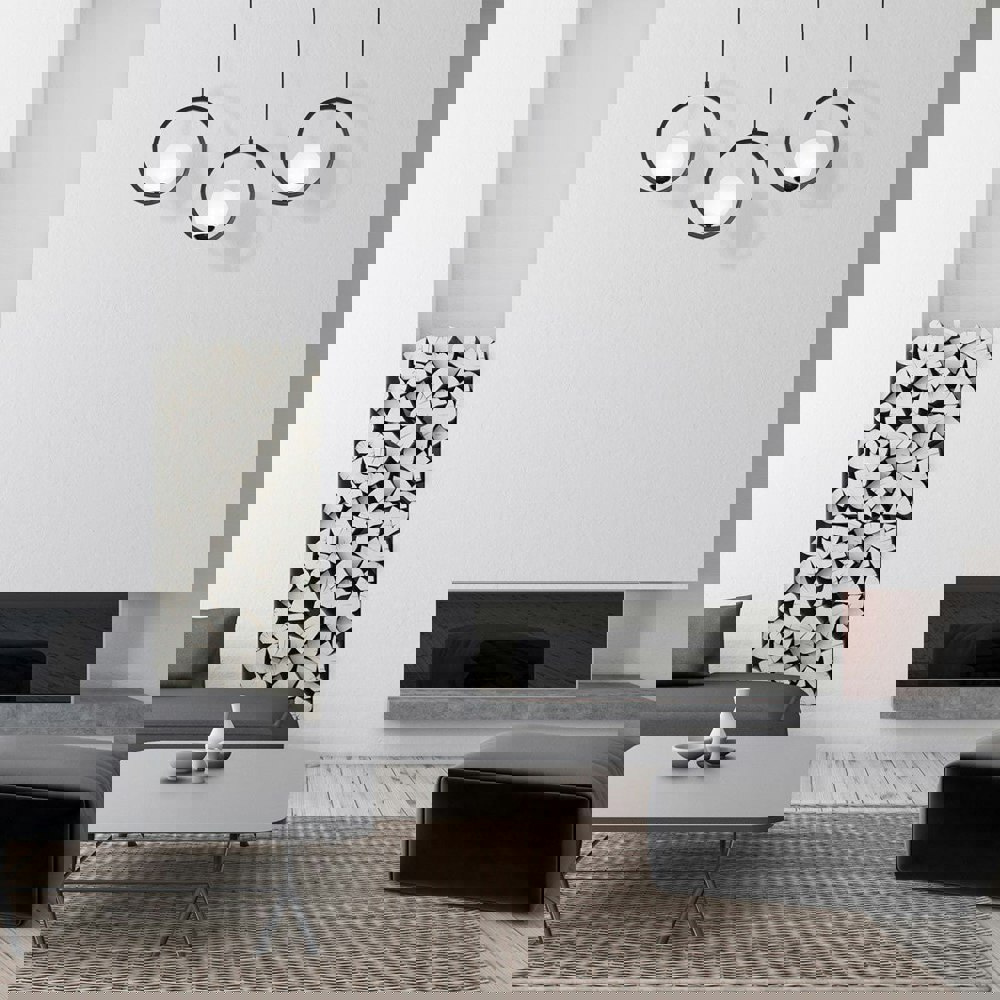 The Boston series features designer hanging ceiling lights, beautifully hand made from metal and glass. Their minimalistic black and white finish enhances the striking circular design, creating a cool, contemporary focal point for any room.