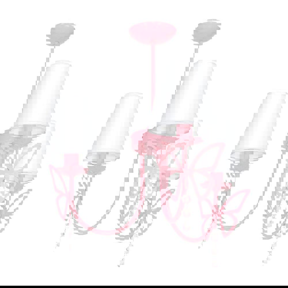The Charlotte by Milagro is a delightful hand made chandelier available with 3 or 5 points of light, dsesigned for low energy LED bulbs. The elegant fabric shades sit beautifully above the finely crafted flying butterfly arms decorated with sparkling crystals. As well as being a centrepiece fit or a Princess or Princes bedroom the Charlotte brings colour and life to a boutique style setting or conservatory