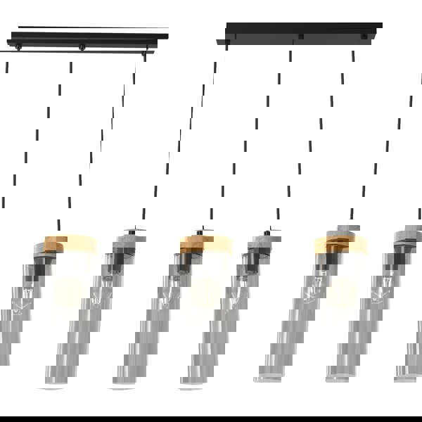 The Milagro Elicia is a beautiful range of hand made designer pendant lights crafted from matt black metal, 22 cm smoked glass shades held by FSC accredited Oak wooden fittings. Each can be height adjusted from 50–90 cm to create the desired effect.