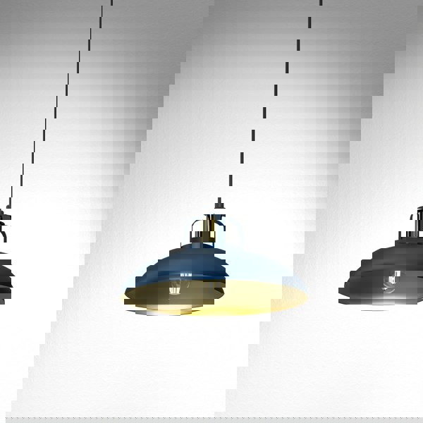 The Felix lamps from Milagro offer a fascinating blend of the rugged industrial look and the attractive chic provided by the luxurious colours. This single pendant is hand made from durable metals and finished in noble Navy Blue with a lovely golden interior to the shade as well as a golden brass effect finish to the top of the lamp. These look particularly effictive with a vintage or filament style LED bulb and is well suited to many room styles – striking against exposed brickwork or adding some ruggedness to a classy lounge or kitchen setting.